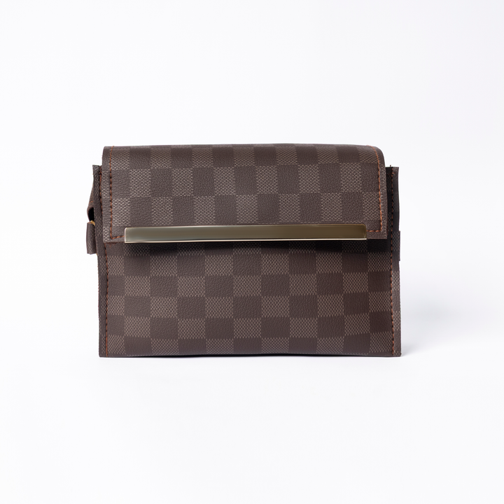 3 Zipper Checkered Elegance Crossbody Brown