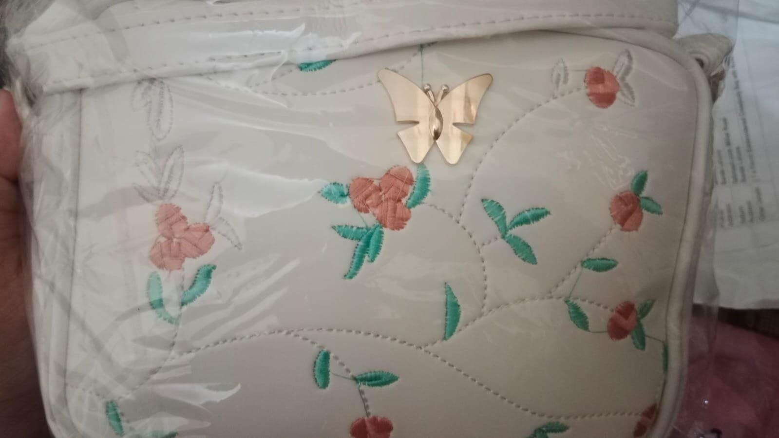Floral Embroidered Crossbody Bag with Butterfly Charm
